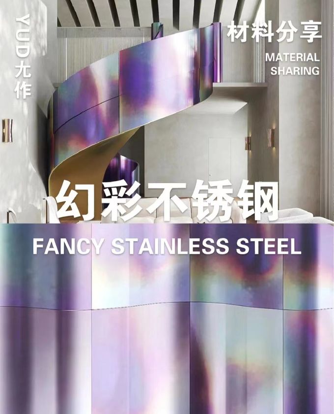 Нержавеющая сталь без отпечатков пальцев часто используется в архитектурном украшении, таких как стеновые панели и лестничные перила.